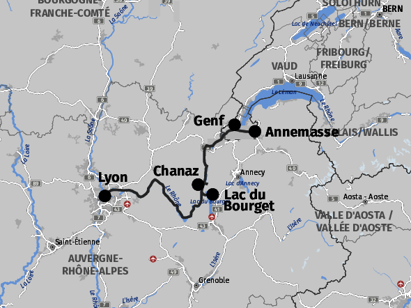 - 6x Übernachtung/Frühstücksbuffet in 3- oder 4-Sterne Hotels (2x in Annemasse, 2x in Chanaz, 1x in Ambérieu-en-Bugey und 1x in Lyon).