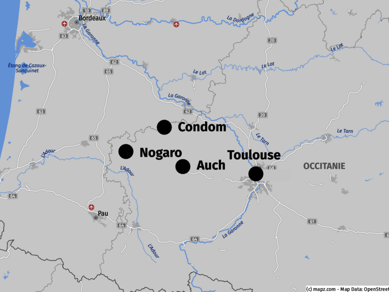 Im Herzen der sanft geschwungenen Hügellandschaft der Gascogne liegt das Département Gers – Heimat des legendären Musketiers d’Artagnan und Sinnbild französischer Lebensart. Hier werden Genuss und Tradition großgeschrieben. Als wahres Paradies für Feinschmecker ist die Gegend bekannt für verschiedenste kulinarische Schätze: von edlem Armagnac über Foie Gras und zartem Gänse- und Entenkonfit bis hin zu regionalen Dessertspezialitäten. Doch nicht nur Gaumenfreuden prägen diese Region. Ein reiches kulturelles und architektonisches Erbe mit imposanten Festungen, historischen Burgen, denkmalgeschützten Bauwerken und Museen erzählt von einer bewegten Vergangenheit. Entdecken Sie eine Region voller Charme, Geschichte und Genuss.